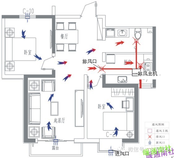 工作原理——在單向流的排風(fēng)型家用新風(fēng)系統(tǒng)的基礎(chǔ)上增加了進(jìn)風(fēng)的動力系統(tǒng),進(jìn)風(fēng)孔進(jìn)風(fēng)更主動,增加了換氣的效果,對空間的密閉性要求較低,排風(fēng)和送風(fēng)可以同時(shí)進(jìn)行,室內(nèi)負(fù)壓就對新風(fēng)換氣的影響較小,通過調(diào)節(jié)送風(fēng)機(jī)和排風(fēng)機(jī)的風(fēng)量,還可以調(diào)節(jié)室內(nèi)的舒適度。